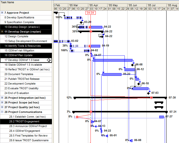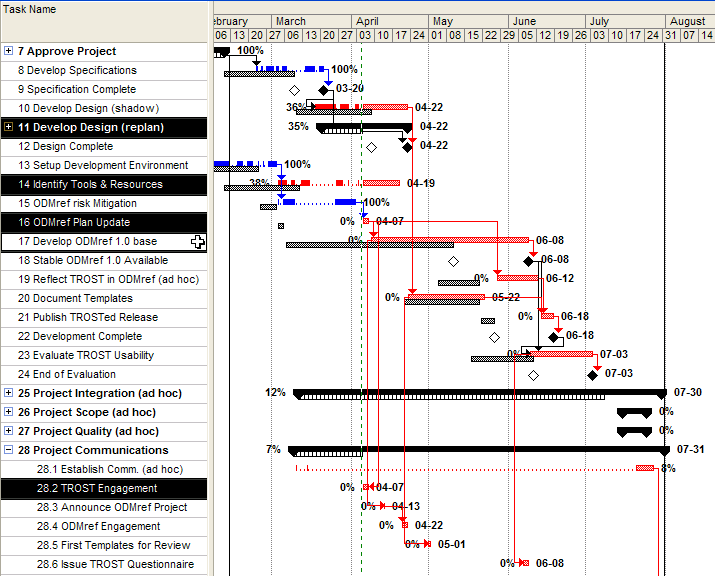 The project for initial ODMref 1.0 development is embedded in the TROST Pilot project. ODMref 1.0 project tracking includes only those TROST Pilot activities having some bearing on ODMref 1.0 development.